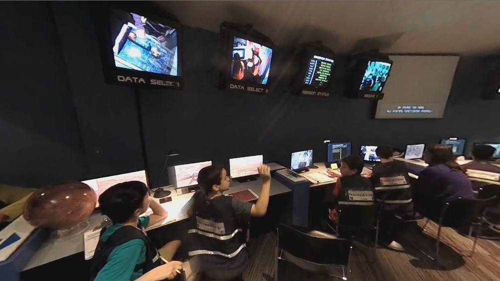 The Houston Museum of Natural Science has an innovative attractiom, the "Expedition Center" at the museum. Designed to allow visiting students to have an experience similar to what would happen if they were part of a NASA mission contol team. The expeditions vary in subject... driving a monster truck in the 1/6 gravity on the Moon, flying a Mars Plane over realistic Martian NASA MOLA terrain in the thin Martian atmosphere... or in this case, piloting a Remotely Operated Vehicle [ROV] to explore a realistic-looking wreck of the Titanic. It's a staged immersive experience.